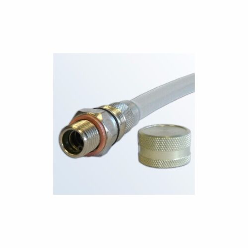 When changing the oil you unscrew the cap and put on the hose connector via quick release.